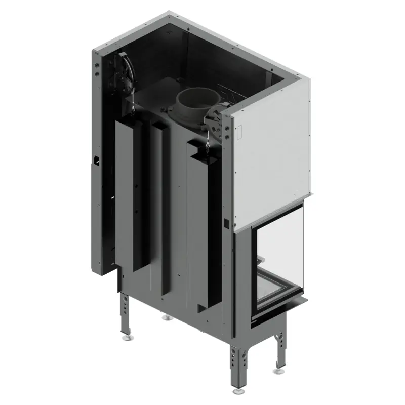 Der Kamineinsatz eignet sich besonders für moderne Kaminanlagen mit Ecksichtscheibe und bietet einen beeindruckenden Blick auf das Feuer. Ideal für Wohnzimmer, offene Wohnbereiche sowie moderne Architekturkonzepte.