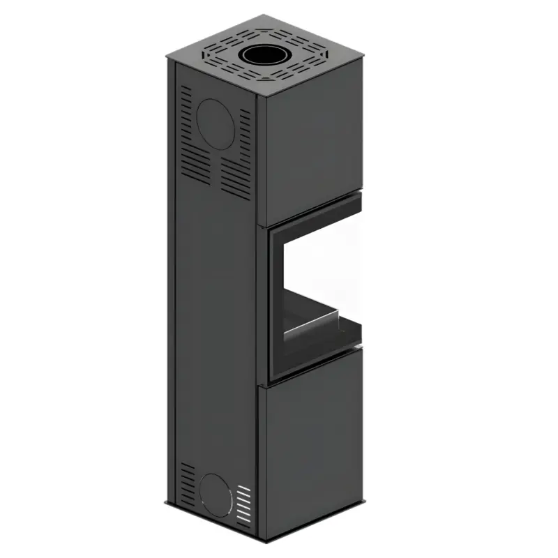 Der HITZE GABI Kaminofen wird aus hochwertigem Kesselstahl P265GH gefertigt und ist für hohe Temperaturen ausgelegt. Präzise Verarbeitung sowie moderne Fertigungstechnologien wie Laserschneiden und Roboterschweißen sorgen für Langlebigkeit und hohe Nutzungssicherheit. Das Gehäuse mit hinter dem Türrahmen verborgenen Seitenwänden verleiht dem Kaminofen eine besonders elegante und einheitliche Optik.