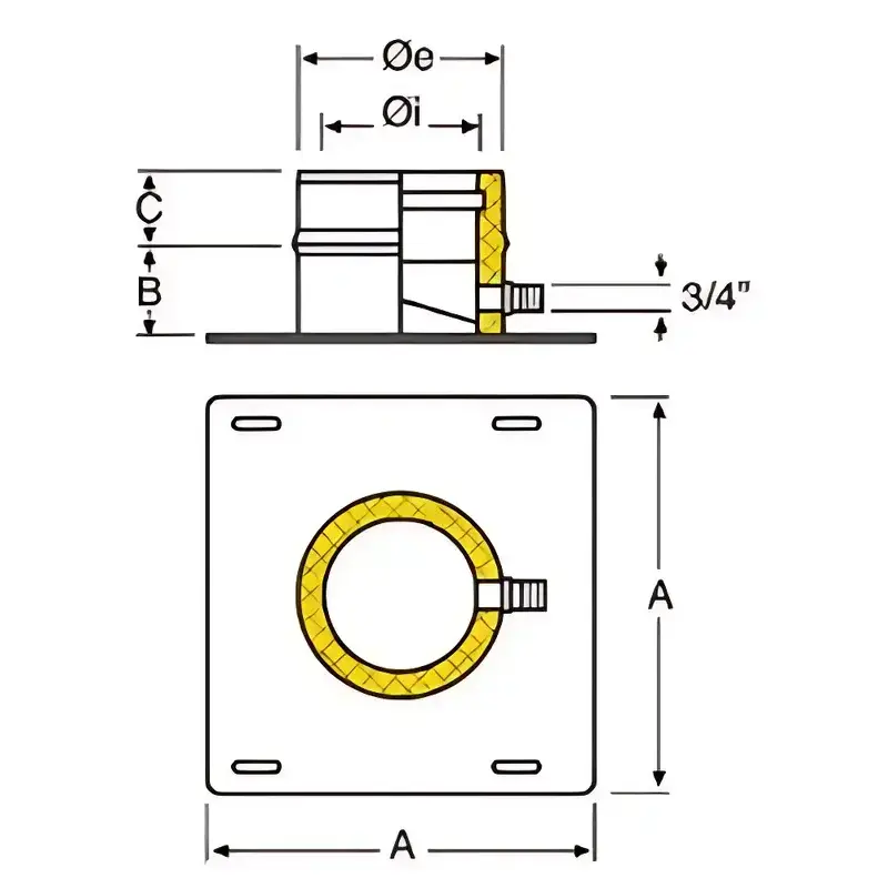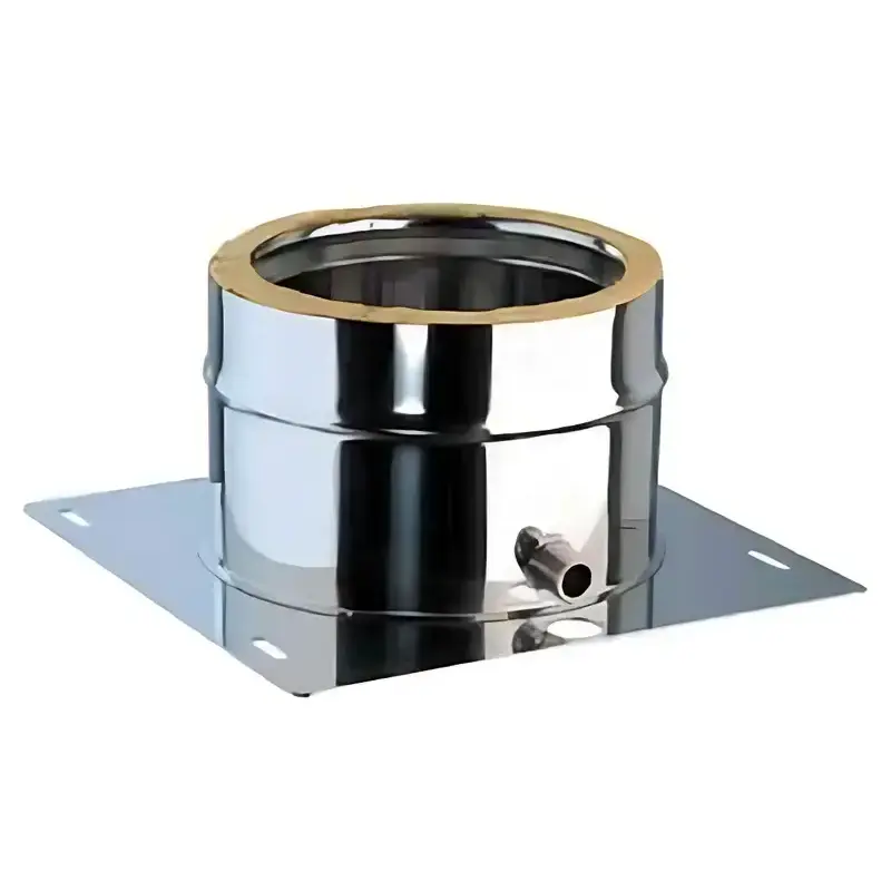 Bertrams | Verankerungsplatte Edelstahlkamin mit Kondensatablauf | doppelwandig mit 25mm Isolierung | Einbaulänge 100mm